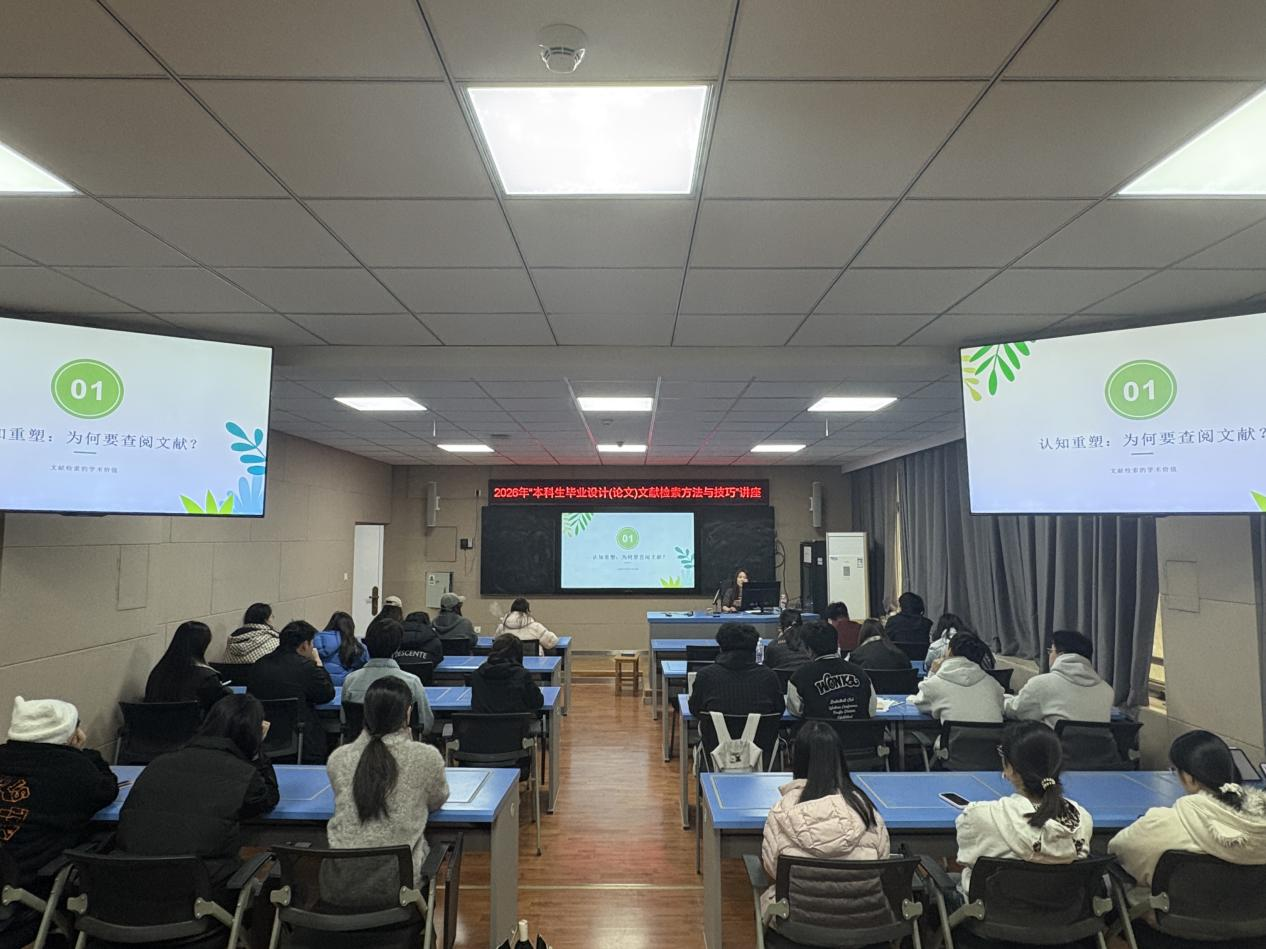 3月23日上午,sunbet申搏在11-605教室举办2026年“本科毕业设计(论文)文献检索方法与技巧”专题讲座,邀请图书馆文献建设部王俪凝老师担任主讲。
