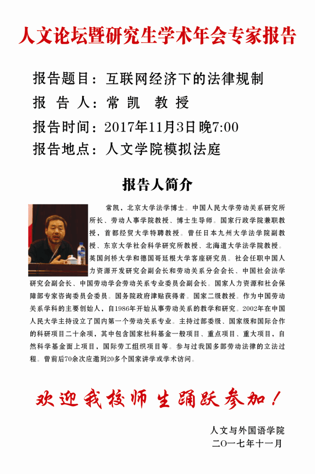人文论坛暨研究生学术年会专家报告——常凯 教授 (中国人民大学)