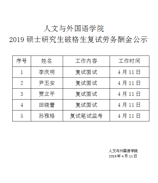 sunbet申搏2019硕士研究生破格生复试劳务酬金公示