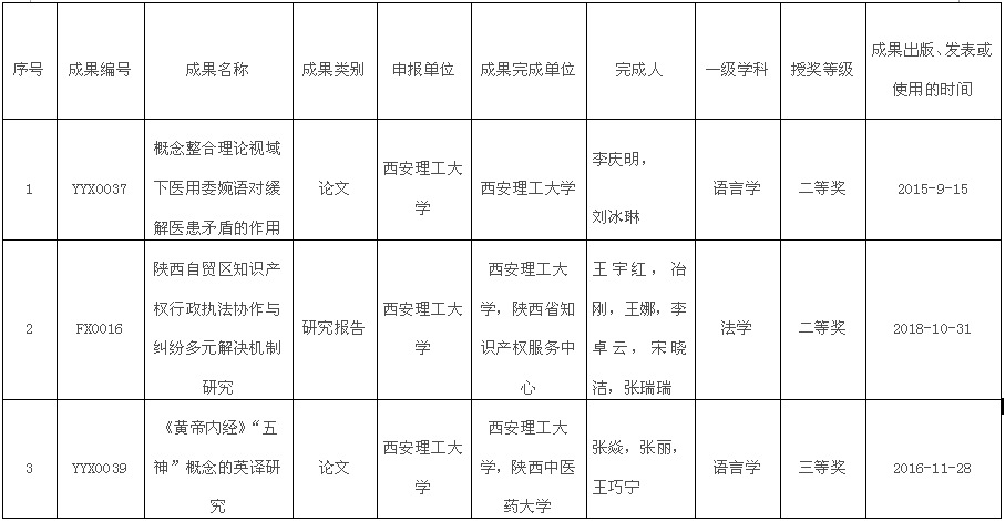 根据《陕西高等学校人文社会科学研究优秀成果奖励办法》(陕教规范〔2017〕5号)和《关于开展2019年度陕西高等学校人文社会科学研究优秀成果奖励等相关工作的通知》(陕教技办〔2019〕3号)规定,经专家初评,共评选产生拟授奖成果519项,其中一等奖98项,二等奖155项,三等奖259项,成果普及奖7项。公司获奖3项。