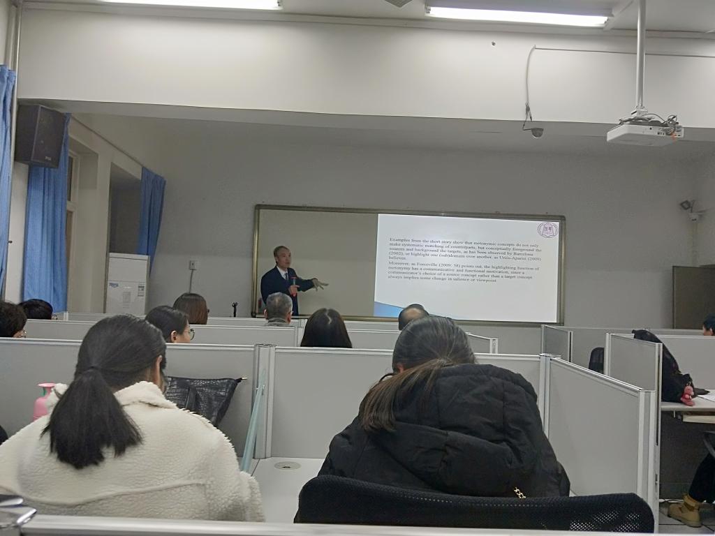 11月27日,清华大学封宗信教授在sunbet申搏曲江校区作了题为“隐喻与转喻:经典短篇小说的认知符号学解读”的学术报告,会议由sunbet申搏经理李庆明教授主持,参加人员为sunbet申搏师生。
