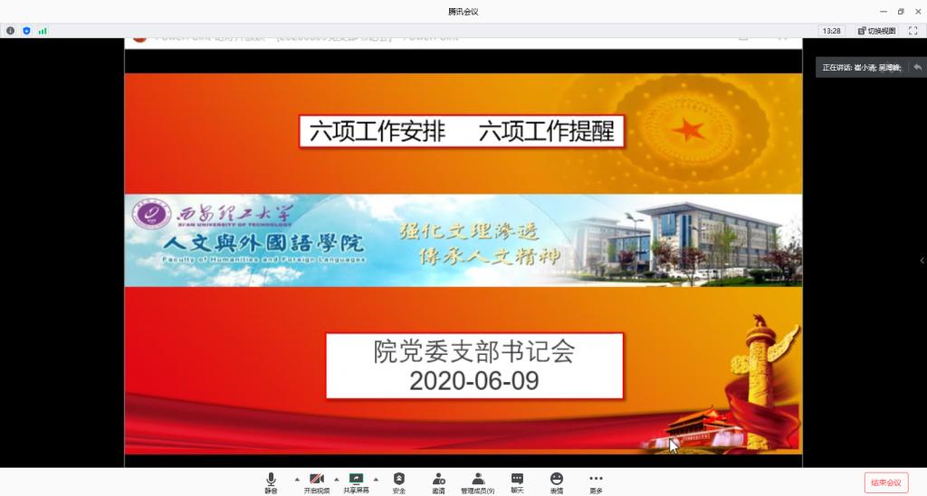 会议以“六项工作安排 六项工作提醒”为主题,对“七一” 党内评优表彰、纪念建党 99 周年活动党员领导干部联系党支部工作、党建工作优秀案例及典型做法征集活动、党建基础数据统计、加强“陕西先锋”微信公众号推广等六项工作进行了安排部署,并对微党课比赛及“党课开讲啦”活动、“双创”工作、加强全国党员管理信息系统使用管理工作、 发展党员工作、党建活动经费管理使用、党费缴纳、管理及使用等六项工作中的重点难点进行了讲解与提醒。会议就相关问题进行了讨论。