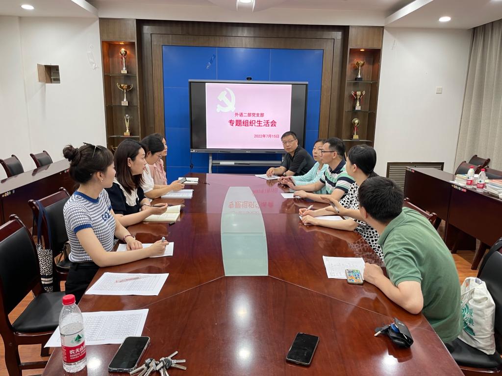 2022年7月15日,sunbet申搏外语二部党支部召开专题组织生活会,会议由副经理兼支部书记黄勇主持,支部全体党员参加。