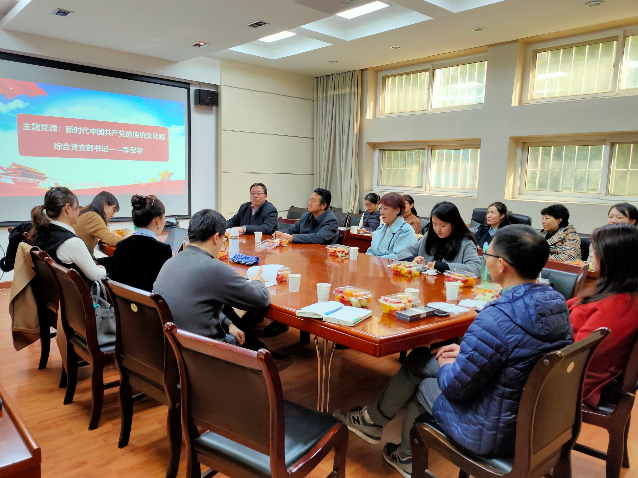 活动期间,综合支部党支部书记李军学老师为大家带来了一堂别开生面的《新时代中国共产党的传统文化观》主题党课讲座。李老师从文化含义及其对于个人及其国家作用引入,重点分析了党的十八大以来,党和国家领导人为什么重视中华优秀传统文化。他从中国传统文化的历史地位、从中国传统文化的人文特性、从加强国家软实力以及国际话语权、东西方思维方式及其表现等方面引经据典、旁征博引的讲解了中华优秀传统文化对于当代社会发展的价值和意义,与此同时,结合国际形势就加强中华优秀传统文化的必要性和紧迫性也做了深入阐述,最后,就发展和弘扬中华优秀传统所应坚持的原则李老师也做了细致而严谨的分析。整个讲座内容丰富全面、精彩纷呈、引人深思,党员们听后都深觉把以前零碎细散的认识系统化了,受益匪浅。在互动交流环节,党员们结合自己认识及教学实践对于课程思政中如何加强中华优秀传统文化教育也与李老师进行了深入交流和探讨。大家普遍认为这次讲座深化了对于中华优秀传统文化的认识,刷新了对于中华优秀传统文化的理解,对于如何在教学事实践中讲好中国故事,传播中国声音,深化课程思政内容启发良多,对于如何深化和细挖中华优秀传统文化的资源也提供了一定遵循。