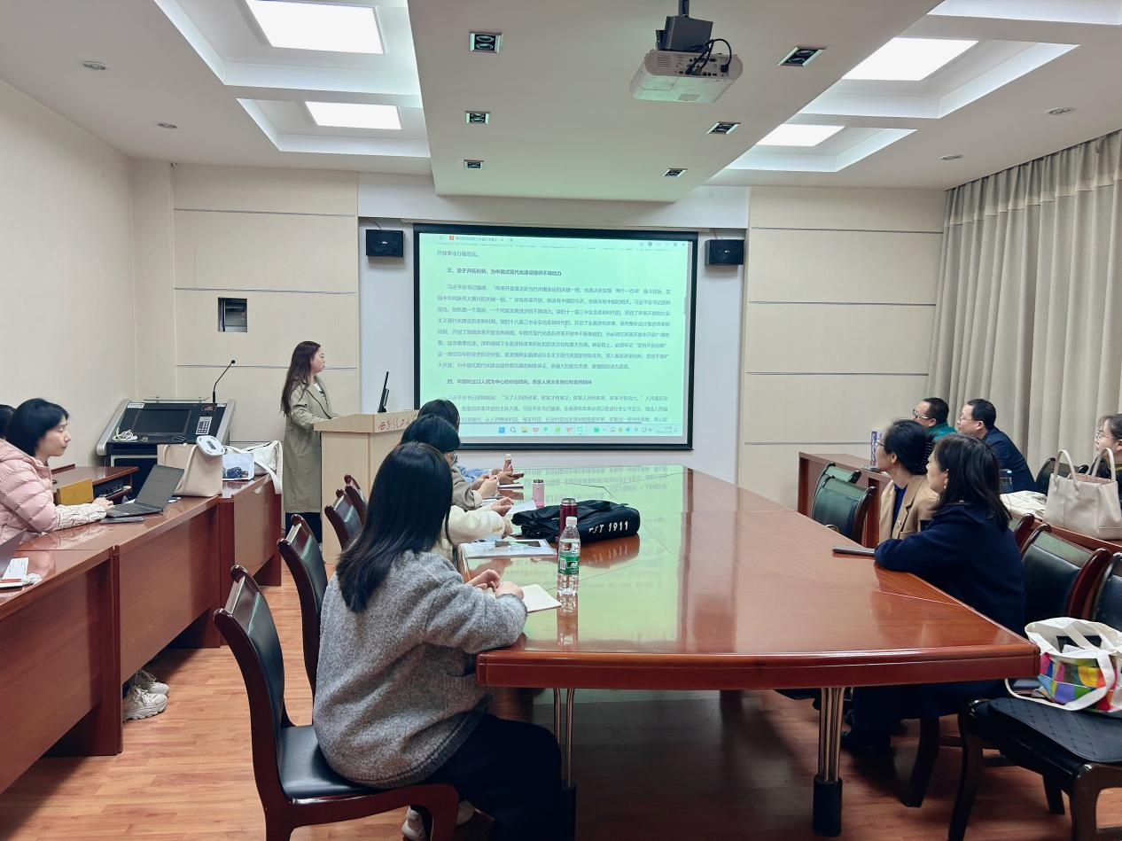 外语一部党支部书记翟芳同志带领全体教师深入学习贯彻习近平总书记关于全面深化改革的一系列新思想、新观点、新论断。接着,教师们围绕各自日常的教学实践与科研探索展开深入交流与研讨,分享心得体会,为教学质量的提升和科研工作的深化注入了新的活力。