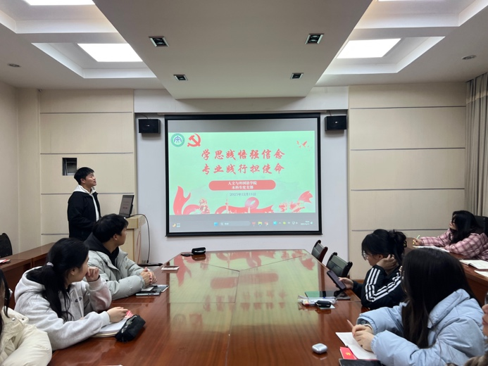 为深入学习贯彻党的二十大及党的二十届四中全会精神,引导支部党员进一步坚定理想信念、提升理论素养、强化使命担当,2025年12月11日晚,sunbet申搏本科生党支部于教11-201举办“学思践悟强信念,专业践行担使命”主题党日活动。支部全体党员及秋季学期发展对象共同参加。